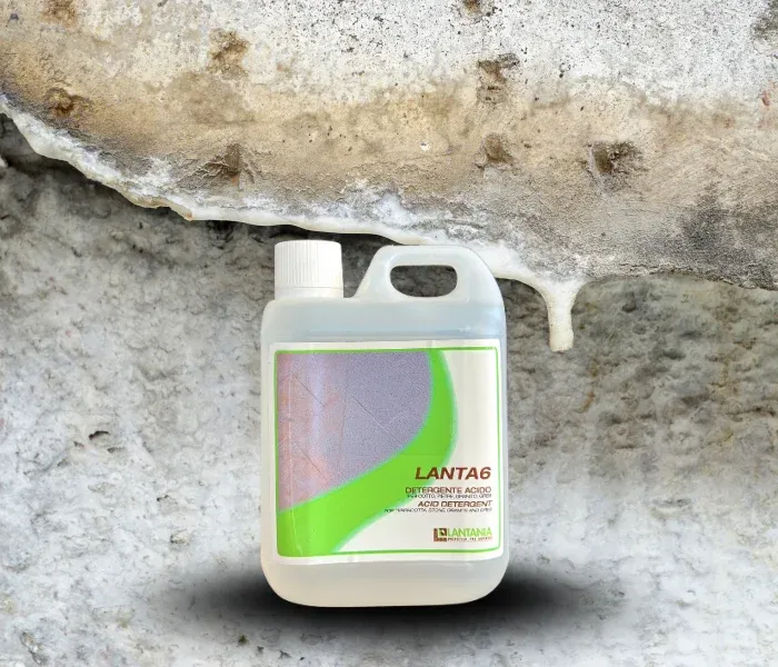 LANTA6 nu generează fum coroziv în timpul utilizării. Acționează împotriva sărurilor și cimentului și, datorită formulei sale, facilitează operațiunile de curățare. Nu aplicați pe marmură sau pietre lustruite. Vă recomandăm să testați produsul pe o suprafață mică înainte de utilizare.