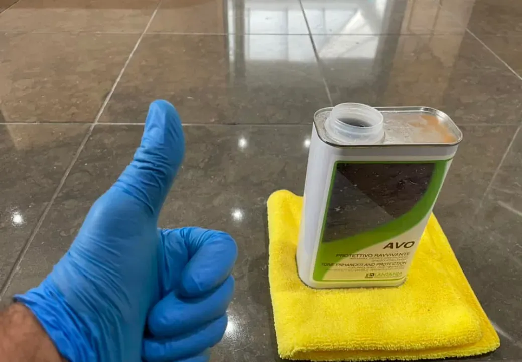 Pe o suprafata bine curata si uscata, aplica AVO cu o carpa, avand grija sa nu exagerezi cu cantitatea. Asteapta cateva minute, apoi sterge suprafata cu o carpa curata sau foloseste o masina de periat cu pad moale, pentru a favoriza absorbtia produsului si a indeparta eventualele reziduuri. Pe suprafete foarte absorbante, se poate aplica un strat suplimentar foarte subtire.