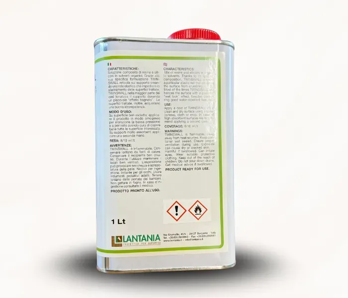 TWINSWALL este un liant/consolidant pe baza de solvent (rasini + siliconi in solventi organici), conceput pentru a stabiliza suprafetele absorbante si a reduce degradarea in timp. Aplicat pe un suport curat si complet uscat, produsul patrunde in material si ajuta la intarirea stratului de la suprafata, contribuind la limitarea exfolierii si la obtinerea unui efect vizual placut de „aspect umed”, fara ingalbenire.
