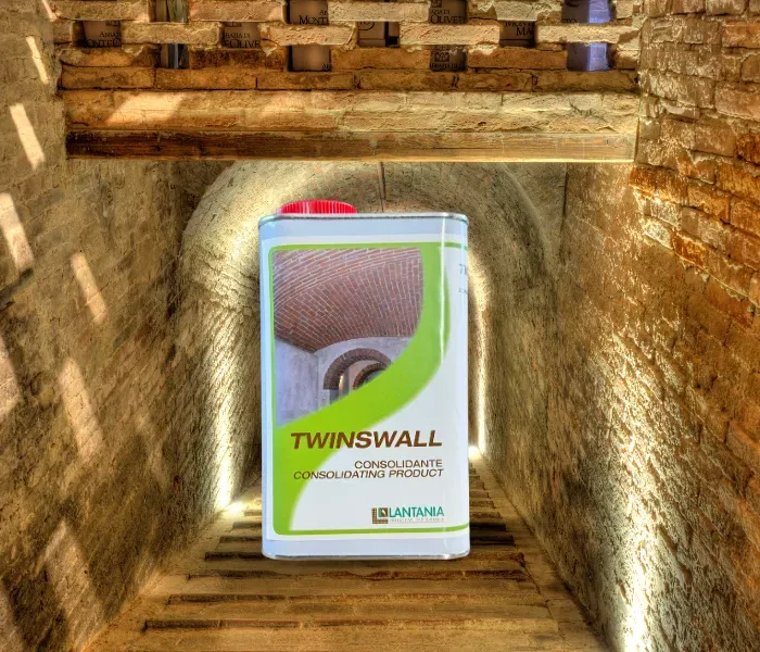 TWINSWALL este un liant - consolidant pentru caramizi pe bază de solvent (rasini + siliconi speciali) care intareste suprafata, previne exfolierea/ sfaramarea si ofera un efect plăcut de „aspect umed”, fara ingalbenire (cum se intampla in cazul lacului).